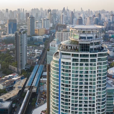 The highest skyscraper on Sukhumvit Road (forty-seven stories) is situated in a prime location next to the BTS, the expressway, and other city links. With exceptional architecture and remarkable landscaping, the Sky Walk Condominium offers a truly luxurious urban lifestyle. The building is specially designed to allow users to savor the breathtaking beauty of Bangkok from every possible perspective.