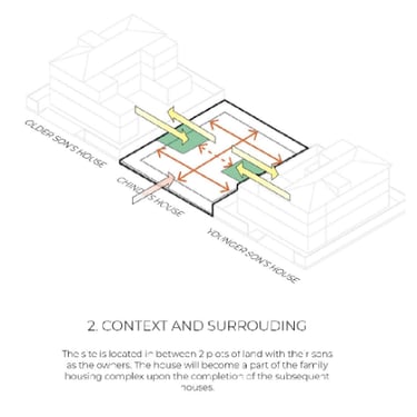 This design not only emphasizes functionality but also maintains a contemporary aesthetic and creates a warm atmosphere, encouraging family members of all ages to spend time together and care for one another smoothly. The intelligent allocation of space, from the downstairs bedrooms near the bathroom to the green areas for relaxation, helps create an environment that supports multi-generational living, making the Three House project a perfect home for long-term residency.