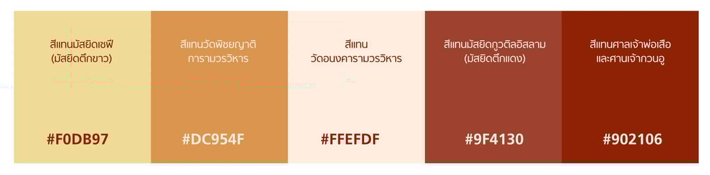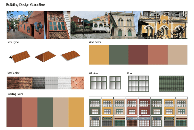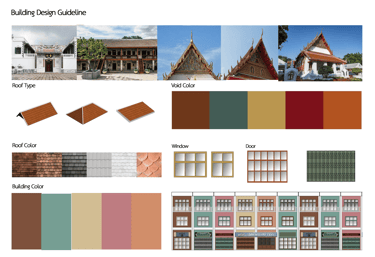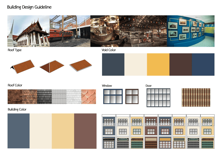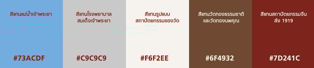 From a study of the architecture in the Somdej Chao Phraya area, it was found that there are architectural elements that should be promoted to preserve the landscape, identity, and cultural heritage of the Somdej Chao Phraya area. Architectural recommendations were developed based on the identity derived from the colors and unique building styles in the area, with the aim of creating a unique district.