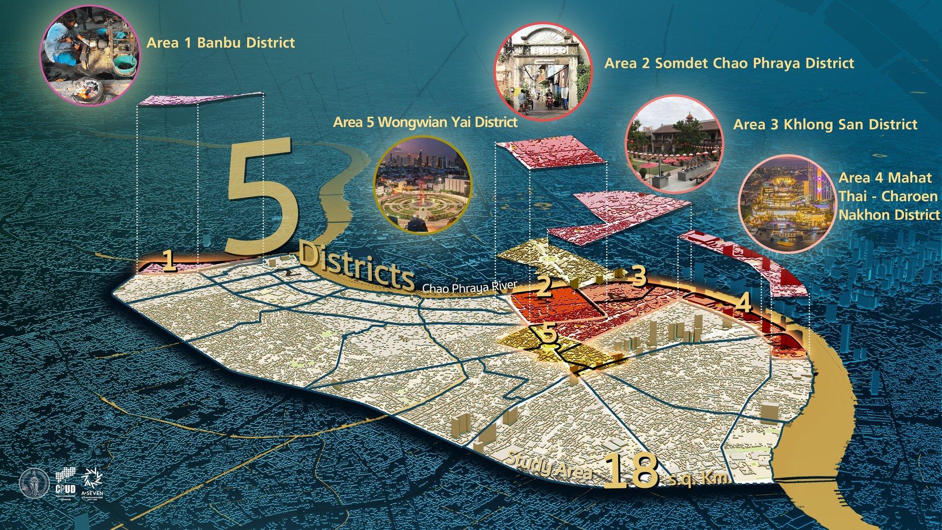 1.To study, survey, and prepare a strategic master plan for the development, improvement, and urban regeneration at the district level in the historic urban area on the Thonburi side.