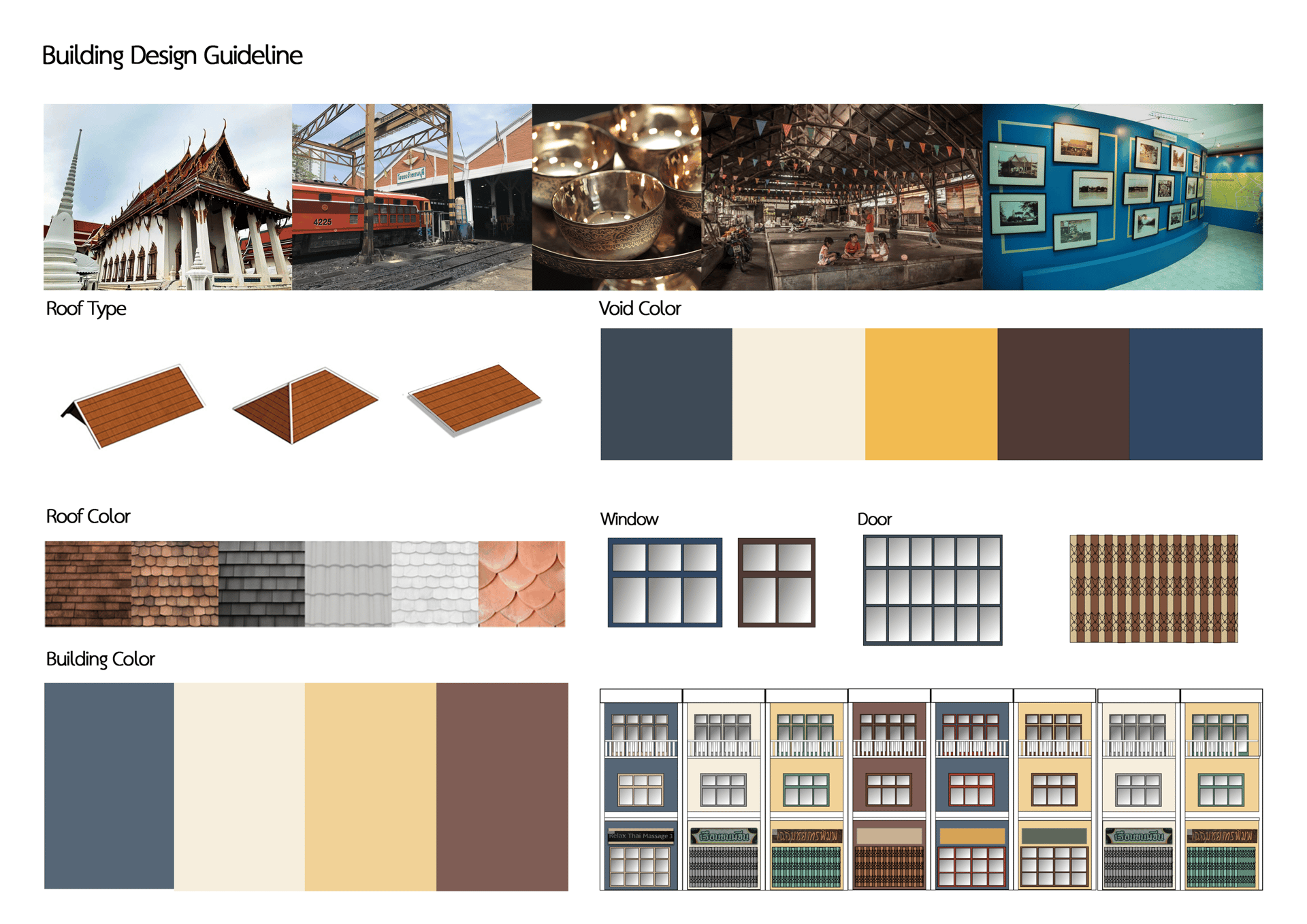 From a study of the architecture in the Wongwian Yai area, it was found that the area has large commercial buildings, including department stores, cinemas, and train station buildings. The characteristics of these buildings contribute to architectural elements that should be promoted to create a clear identity for the area. In the future, the commercial center on the Thonburi side will generate new economic activity, so it is necessary to propose design and development guidelines for new buildings to have a unique character, creating a memorable image for the area and accommodating the large number of people who will be visiting.