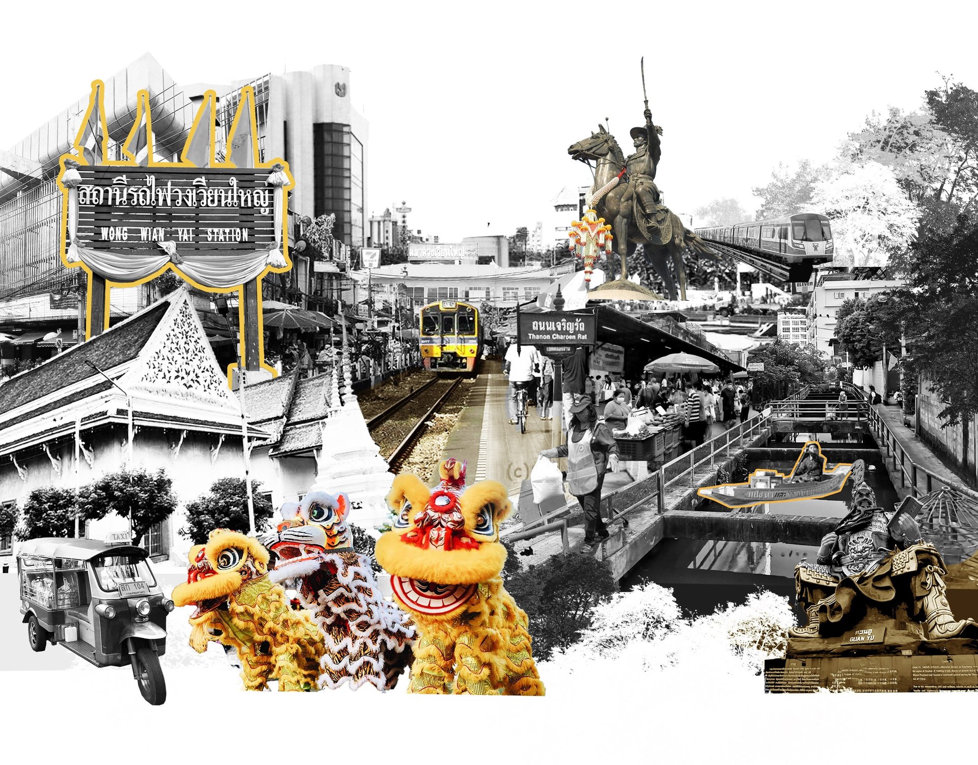 Historical Transportation: Represents Wongwian Yai Railway Station, which has served as a key access route for people in the area from the past to the present.