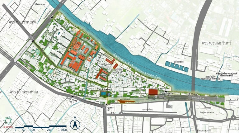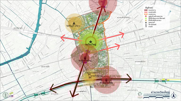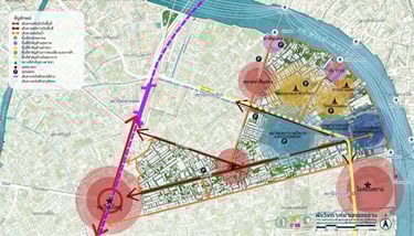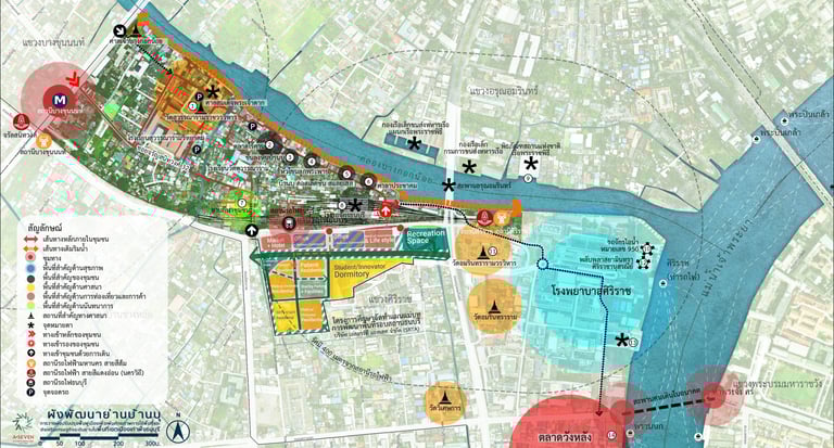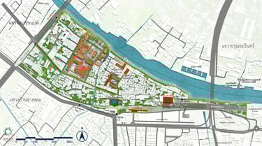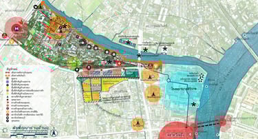 The Strategic Master Plan for the Development, Improvement, and Revitalization of Neighborhood-Level Urban Areas in the Thonburi Riverside Old Town has the vision: "Thonburi Old Town: A Living Heritage City Harmonizing History, Innovation, and Sustainability to Foster an Enhanced Quality of Life for All." This plan utilizes the concept of developing and revitalizing the Thonburi Riverside Old Town area, aiming to make it a Living Heritage City that integrates the power of social, cultural, and economic diversity to create a new, balanced, and harmonious way of life. It also maintains the balance and reflects the cultural identity of the Thonburi Riverside Old Town, focusing not only on preserving important historical, architectural, or artistic areas but also on seamlessly connecting historical spaces from the past through the integration of green spaces with cultural heritage conservation. Furthermore, it drives the local creative economy by promoting innovation and learning to create economic opportunities and improve people's quality of life. Under this approach, the Thonburi Riverside Old Town area will grow alongside the original communities and new generations, who will jointly drive the city toward sustainability and make it a livable city for everyone. This will be achieved by connecting local wisdom with an advanced quality of life, under the balance of urban development and cultural roots.