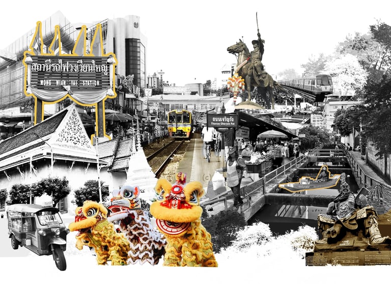 Commercial Area: Represents Wongwian Yai Market, a historic trading district on the Thonburi side.