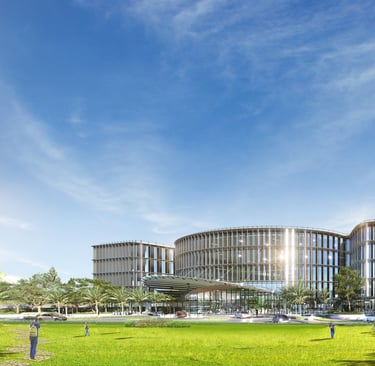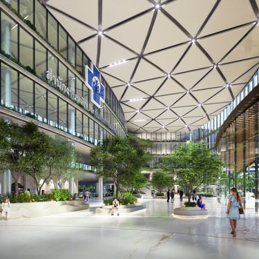 The design of the National Health Security Office building aims for a sustainable green & smart office with transparent and people-friendly work-supporting technology. The National Health Security Office building will not only be a workplace for staff but also a "symbol" of equal access to healthcare rights for Thai citizens.