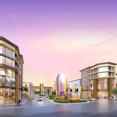 Located ten minutes from the airport in Phnom Penh, the Orkide Pochentong’s design is inspired by elements of aviation. The entry sculpture uses stylish form, smooth surfaces, and reflective materials to evoke the wings of an aircraft. The flashy and dynamic landscape, which consists of a garden, a walking track, bicycle lanes, and a public gathering area, also adopts this futuristic aesthetic. The unit design comprises three types of villas-- Marigold, Sunflower, and Tulip.