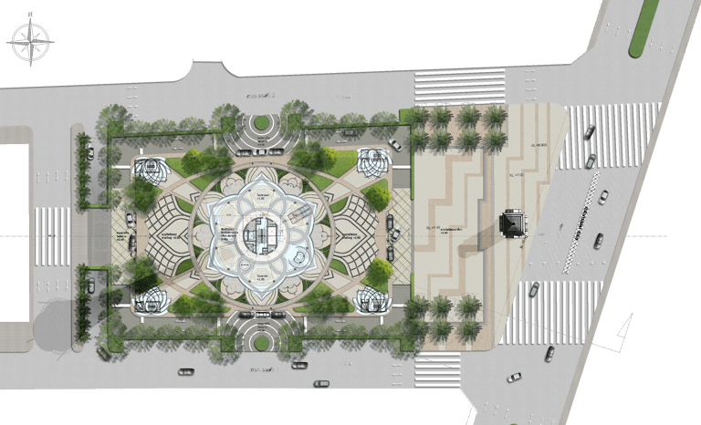 "The project is situated in the heart of Hat Yai’s commercial district, surrounded by major markets including Plaza 2 Market, Railway Market, Rattakan Fruit Market Complex, and Kim Yong Market. It fronts Phet Kasem Road, the city’s primary artery, and is located within a 900-meter radius of Hat Yai Railway Station. The surrounding area predominantly consists of shophouses with ground-floor retail and upper-floor residences, complemented by various street stalls and vendors. The front plaza serves as a transportation hub for passenger vans, airport buses, and motorcycle taxis."